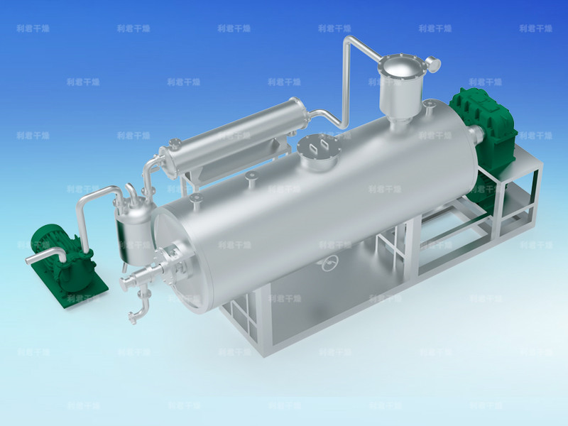 本機(jī)是一種新穎臥式間歇式真空干燥設(shè)備,濕物料經(jīng)傳導(dǎo)蒸發(fā),帶有刮板攪拌器不斷清除熱面上的物料,并在容器內(nèi)推移形成循環(huán)流,水份蒸發(fā)后由真空泵抽出。